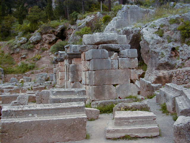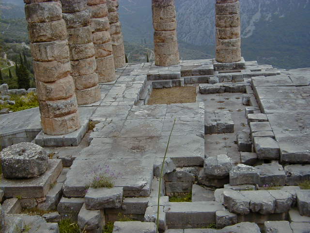 がそこで麻薬を飲み、ワインと月桂樹の葉で朦朧とし、カーカーと何かを喋る。それを神官が聞いて依頼人に韻文に直して伝えたらしい。この神殿のある場所は前記のとおり地球の中心と考えられ,その場所を示す“ヘそ石”が安置されていたのだからそれだけでもありがたいのである。(今は隣接する博物館にあり)