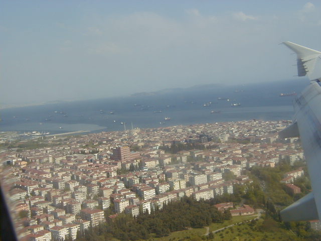 ボスフォラス海峡を挟んで東側新市街はアジア大陸に属し、住宅地が多いが、西側のヨーロッパ側旧市街にはビジネス街が多く、ブルーモスクやトプカプ宮殿、アヤソフィアなど、古典的有名施設は全て西欧側にある。毎朝アジア側からヨーロッパ側へ自動車やフェリーで通勤する人の姿が見える。 住宅の屋根には赤い瓦を葺かねばならないという規制はないものの、概ねご覧の通りの現状を見せており、さすがに観光産業立国ならではの情景である。ギリシャやイタリアの古都など、観光資源として捉えている国では条例規制が行われており、定期的に白い壁や赤い屋根を塗装する義務も課せられているところがある。官民をあげて、継続的に努力しなければいくら美しい海と空を空間保有していても、観光資源すら枯渇するということである。