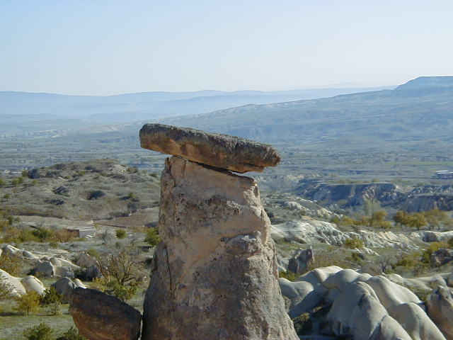 火山の爆発で積もった凝灰岩が風、雨、雪で浸食され玄武岩だけが取り残された。