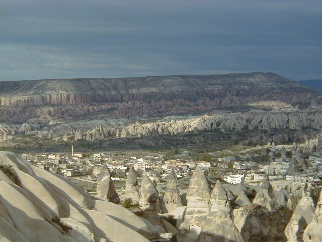 周囲の光景。平坦な部分には普通の家が立ち並んでいる。フランス人がこの地方を気に入っていて、この周囲にも別荘が建築されている。日本と異なり空気が乾燥しているし、高原だから涼しいので別荘としての居住環境としては軽井沢より良好かもしれない。