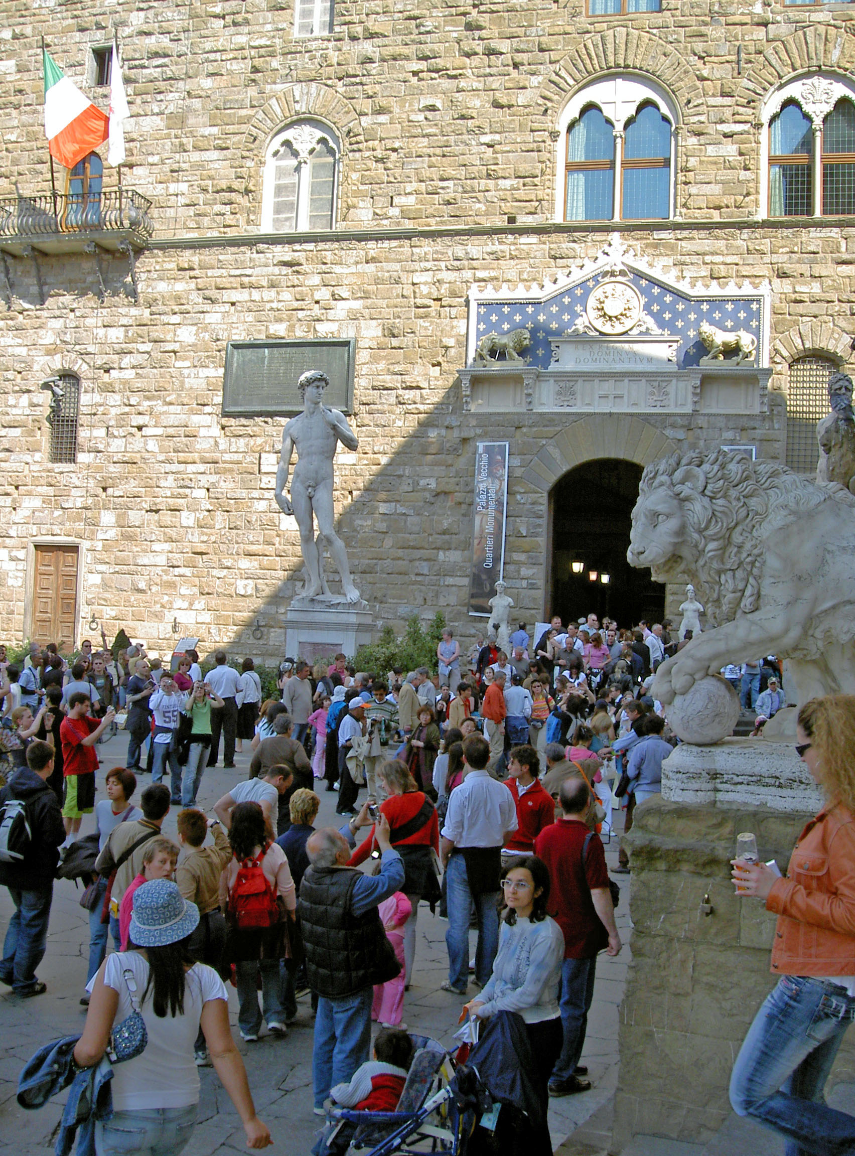 中央に鎮座するダビデ像はミケランジェロの作品のレプリカ。本物はアカデミア美術館収納で撮影禁止です。