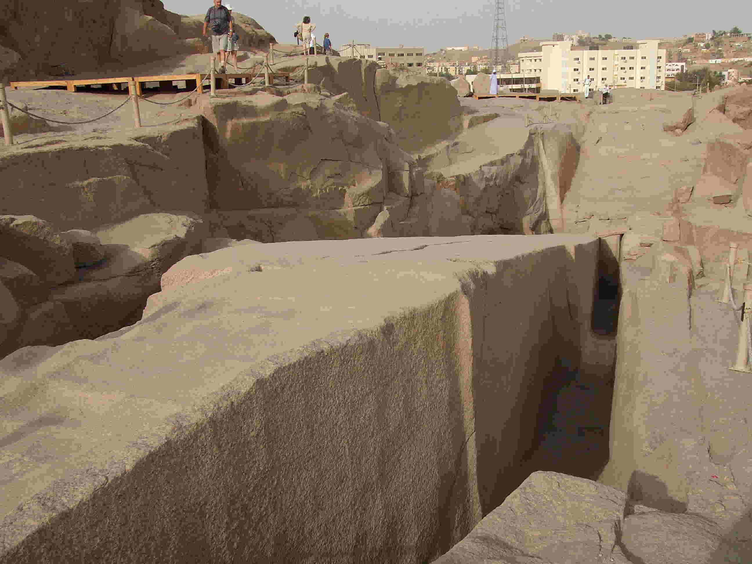 アスワンにある全山赤御影石の花崗岩で切り出される。掘り出し中に上部にひびが入ったため放置されたが成功していれば世界最長のオリベスクが完成されていた。↓