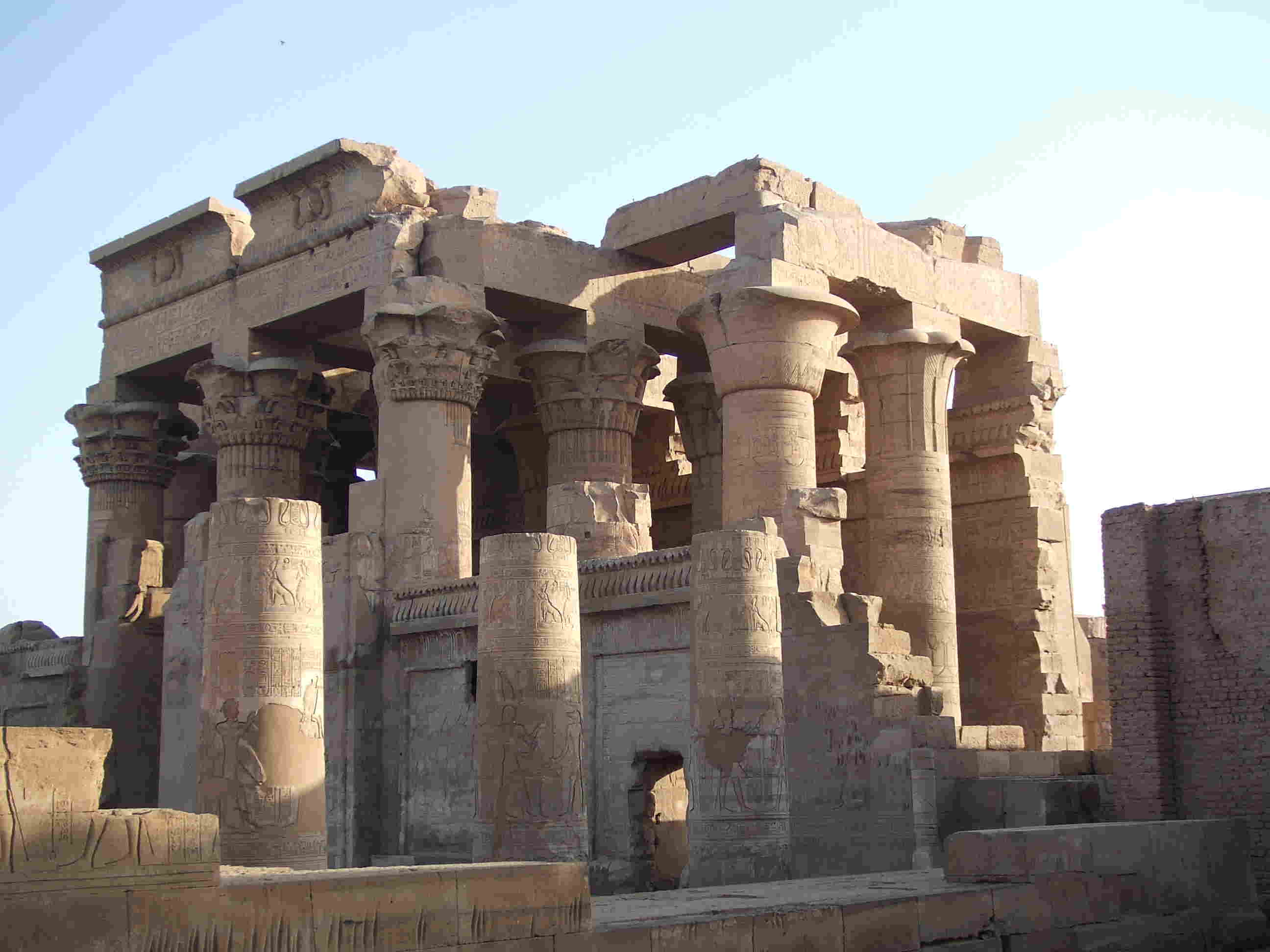 早朝コムオンボへ到着、岸からすぐ目の前にあるのが黄金の丘コムオンボ神殿。プトレマイオス二世が着工し、クレオパトラの時代に完成したとなれば着工から300年かかったことになるが・・そもそも地中海文化の神殿、教会、公共建築物は100年以上の歳月をかけて建築するものが多い。最初に驚いたのはローマのコロッセオであったが、バルセロナのサグラダファミリアなどは第二次世界大戦を途中にはさんでまだ工事が続けられているぐらいだ。となれば当初の設